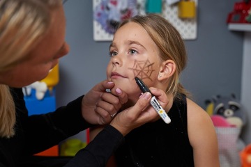 Sada barviček na obličej má u nás doma své stálé místo. Využíváme je třeba na zkrácení dlouhé chvíle, když je Vali nemocná. Tentokrát ale místo motýla trénujeme malování pavučiny s pavoukem. Na internetu najdete spoustu inspirace. Mně se moc líbí i motiv Jacka Skellingtona z filmu Ukradené Vánoce. A zrovna toho skvěle doplníte LEGO hodinkami s kostlivcem.