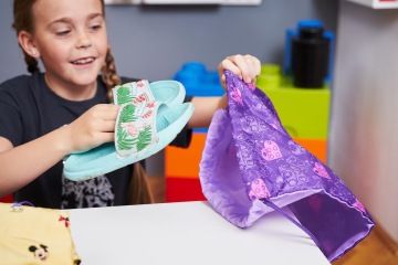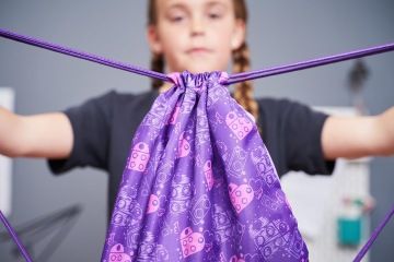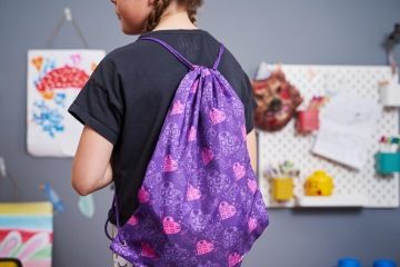 A protože má babička bazén, chystá si Vali napřed plavky, boty k vodě a plavací brýle. Na tento typ věcí je nejlepší stahovací vak, protože když po koupání šoupneme vlhké věci do poesterového pytlíku, nepromočí se. Ten od LEGO Hearts má objem 22 l a rozměry 42 × 34 cm. Původně je určený na přezůvky, ale vy si do něj můžete dát cokoliv.