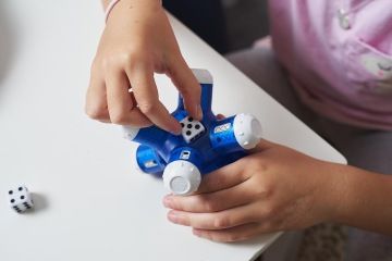 Minu podle výrobce zvládnou řešit děti od 7 let. A i přesto, že je to je matematický hlavolam, nenajdete na něm žádná čísla. Pracovali jsme tak pouze s počtem teček, díky kterým si Vali procvičila jednoduché sčítání a odčítání. Pootočením ostnu se totiž mění počet teček na aktuálně řešené straně, ale zároveň i na dvou dalších.