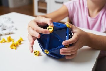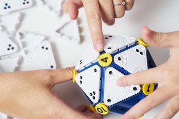 Dvacetistěn s čísly a tečkami pro matematické hlavičky.