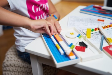 Největší parádu ale Vali udělala s pomůckami do školy. Součástí každé z nich je kousek stavebnice, takže je na sebe vzájemně připevníte. Do LEGO pouzdra si Vali přicvakla barevné fixy, gelové tužky a speciální gumu.
