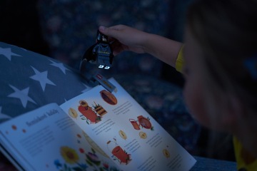 Po celém dni bych řekla, že toho bude mít Vali dost a usne jako špalek. Občas ji ale najdu v posteli, jak si před spaním ještě potají prohlíží knížku. A abych neměla podezření, rozsvítí si k tomu šikovné LEGO světýlko, které přidělá klipem přímo na stránky knížky a silikonovým páskem si nastaví směr, kterým má svítit.