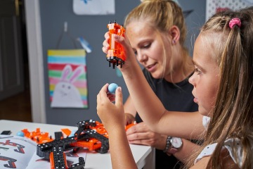 Robotics VEX Switch grip je ideální kombinací hračky a stavebnice pro starší školáky. Sada Switch grip je doporučená pro děti od 8 do 14 let. Vali je 6, mně o něco víc než dvakrát horní doporučená hranice a stavění jsme si užily obě dvě.