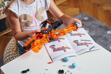 Buď sestavíte pistoli přesně podle návodu, nebo vymyslíte cokoli jiného podle fantazie. Všechny dílky jsou totiž kompatibilní s ostatními stavebnicemi Robotics VEX, takže stavitele nic nelimituje.