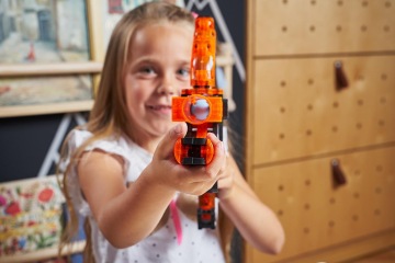 Kulička je lehká, takže nic nerozbije, a vystřelí vždy jen tak rychle, jak rychle stlačíte spoušť. Někdy si děti raději hrají na policajty a zloděje než střílí na terč a ani v tomto případě není důvod k obavám. Kulička má v průměru asi centimetr a půl a ani velmi rychlým stlačením spouště neublíží.