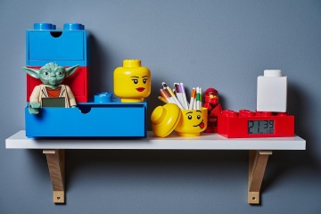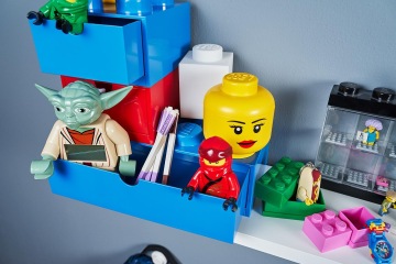 Úložné boxíky se zásuvkou, které vypadají jako několikrát zvětšený dílek z LEGO stavebnice, se vyrábí ve tvaru kostky 2×2 nebo obdélníku 4×2. Do větší se pohodlně vejdou sešity formátu A5 a menší schová třeba úkolníček nebo psací potřeby, které tak děti mají hned po ruce. LEGO boxy se vyrábí v 11 barvách, proto je vždy sladíte se stávajícím vybavením pokoje a uvidíte, jak si děti budou najednou rády uklízet.