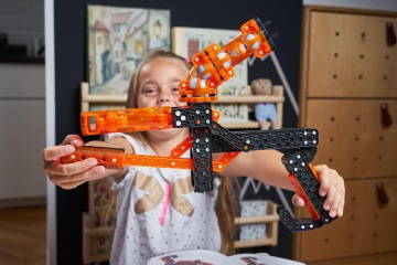 Děti si při stavění procvičí prostorovou představivost i matematiku, a nejspíš si to ani neuvědomí. Pistoli postaví podle obrázkového návodu, ale může vzniknout i cokoliv jiného. Všechny dílky jsou totiž kompatibilní s ostatními stavebnicemi VEX Robotics, takže fantazie dostane zelenou. I když v tomhle případě vlastně oranžovou.