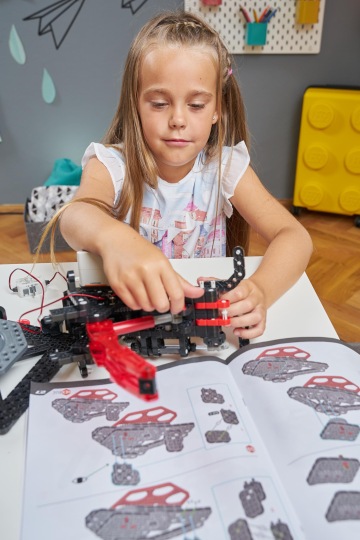Stavebnice VEX Robotics o 50 stranách vyžaduje přesnost a plné soustředění.
